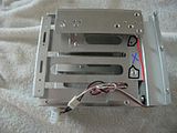 Using a basic 5.25 > 3.5 adapter with a rail on each side, I chopped it to length so I could slide it front/back to position it in the bay. Then notched the front ends so the front grill would slide in. Of course the screw holes didn't line up after that, so drill x4. No anti vibration but the drive runs smooth.